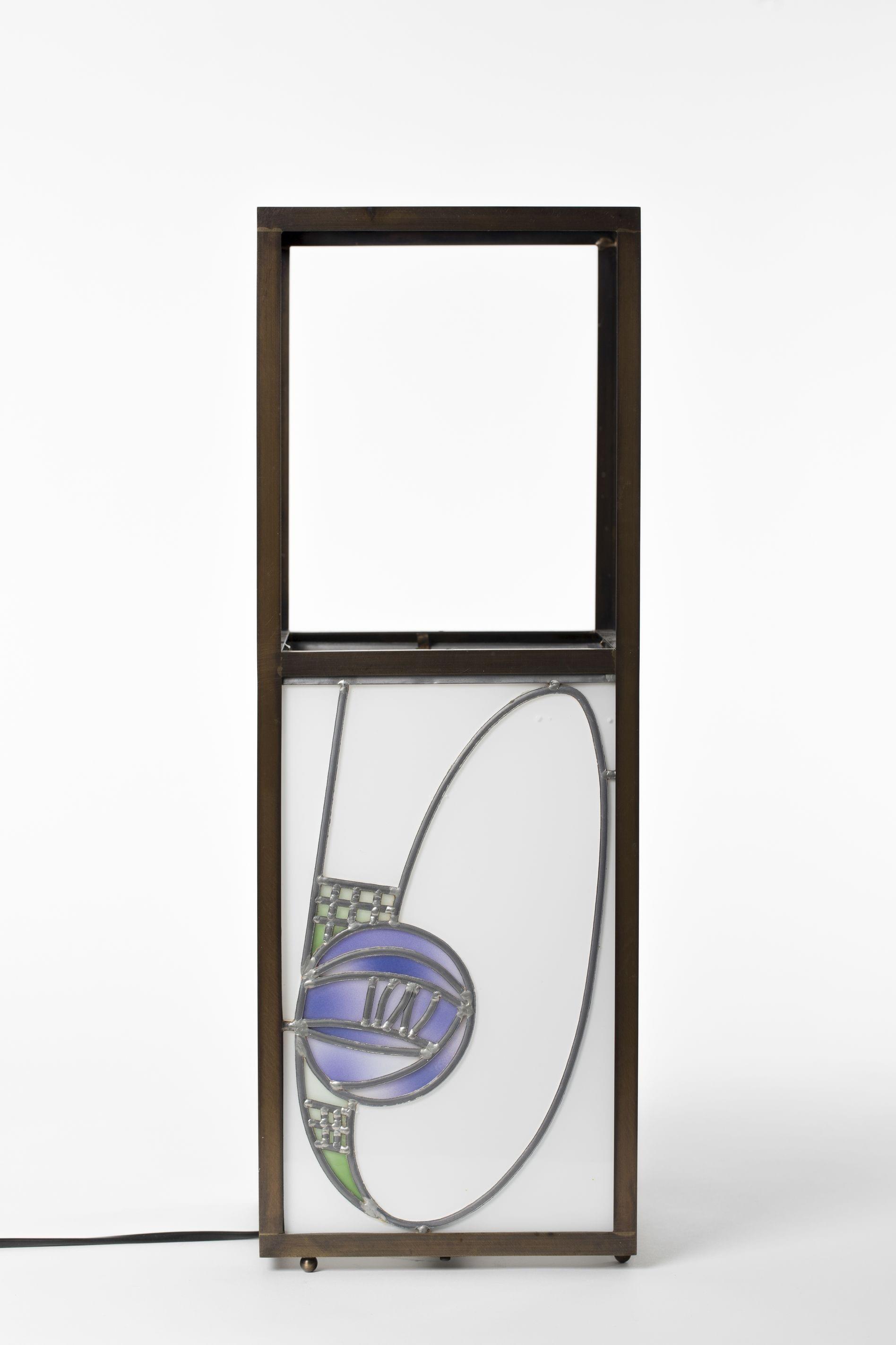 Verre assemblé façon vitrail et métal, 53x19x19 cm