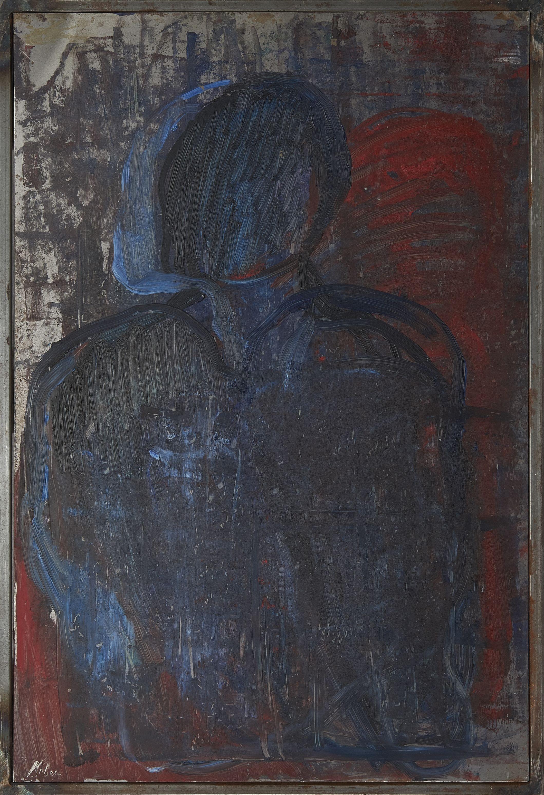 Silhouette, technique mixte sur métal, signée, 50x33 cm