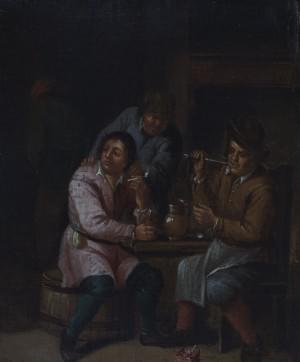 Scène de fumeurs, huile sur toile marouflée sur panneau, 26x21 c...