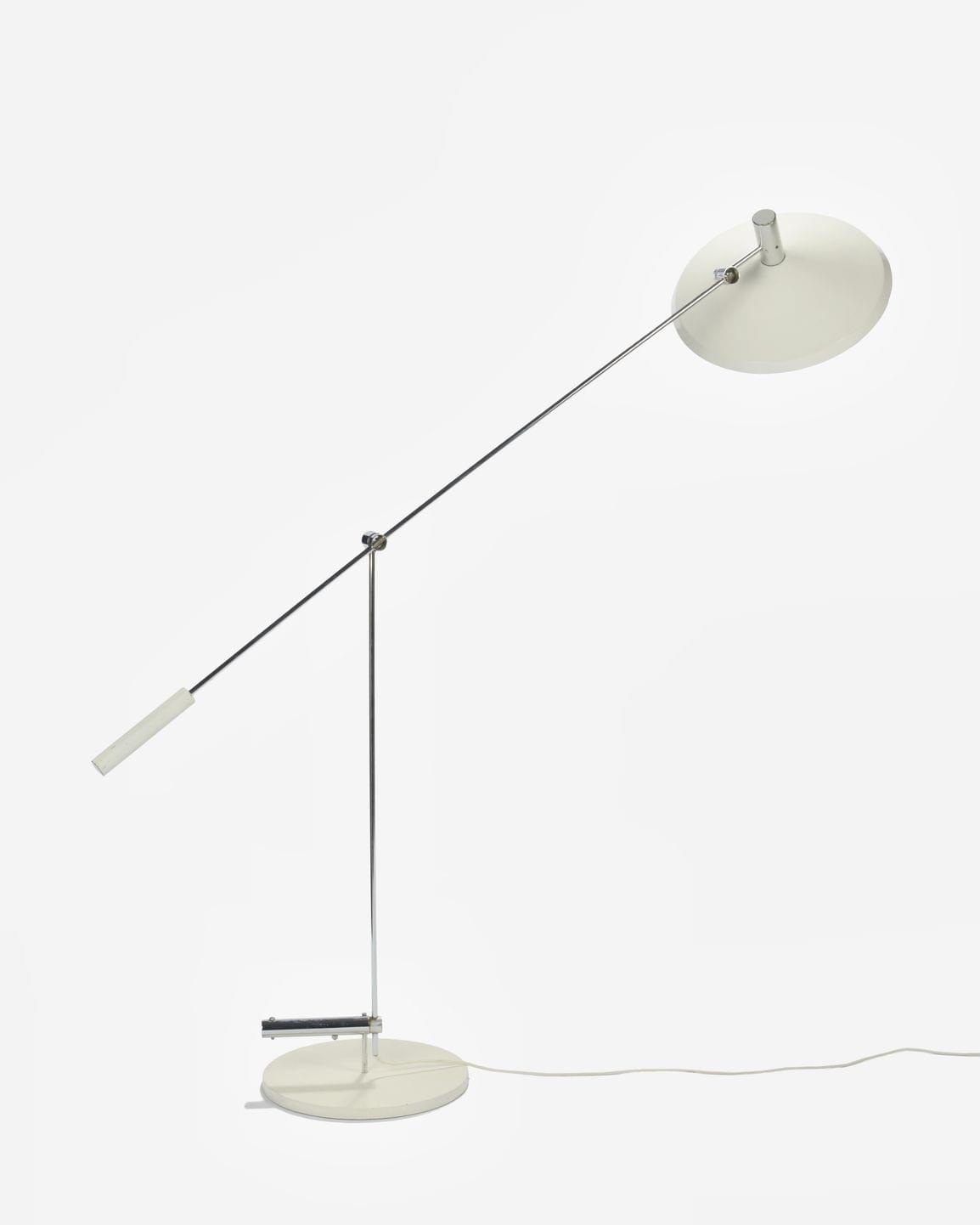 Lampe, modèle 600, métal chromé et laqué blanc, circa 1970, H 160 cm