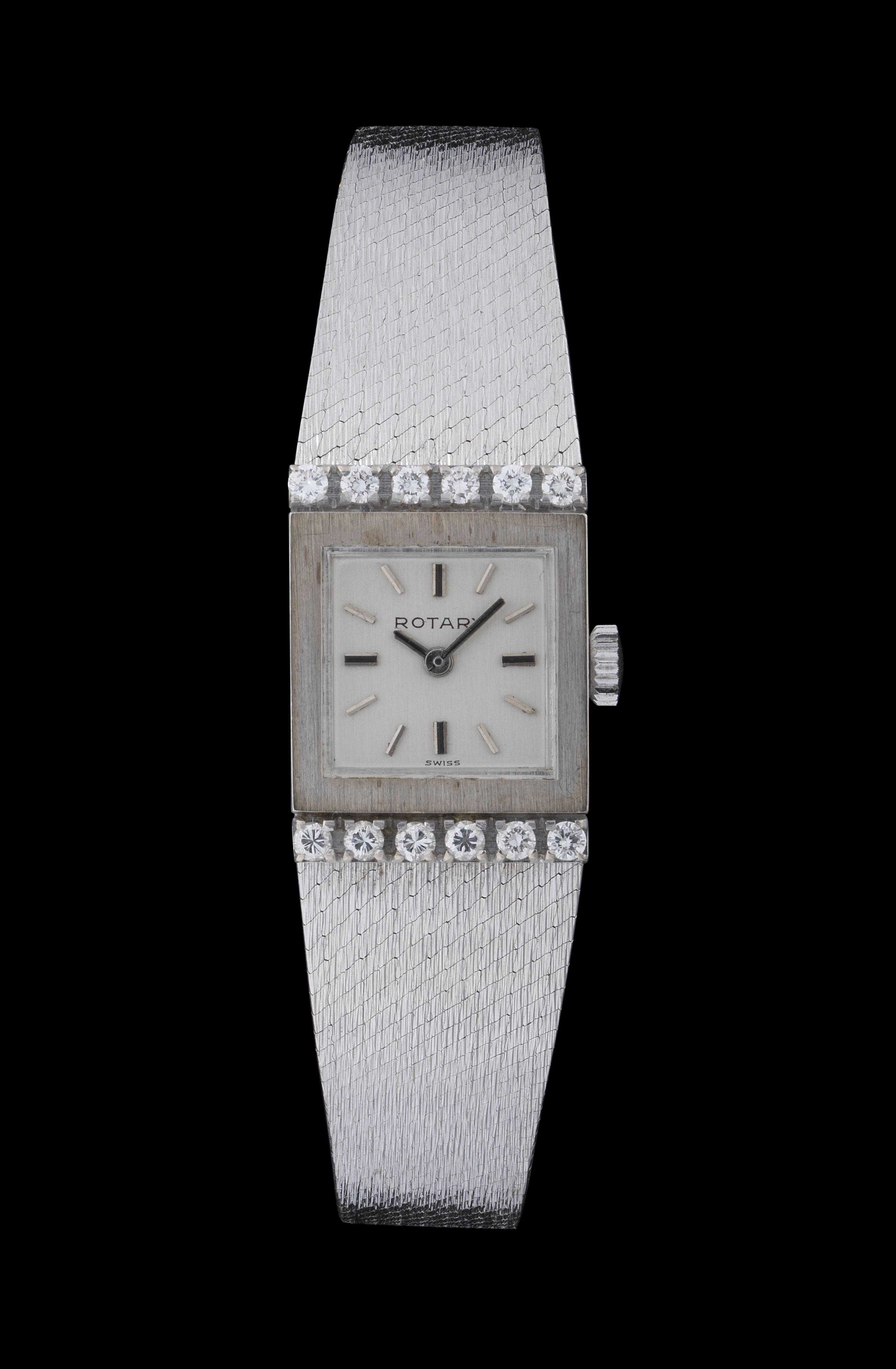 Cadran argent, aiguilles noires, or gris 750, 23x23 mm, L 15,5 c...