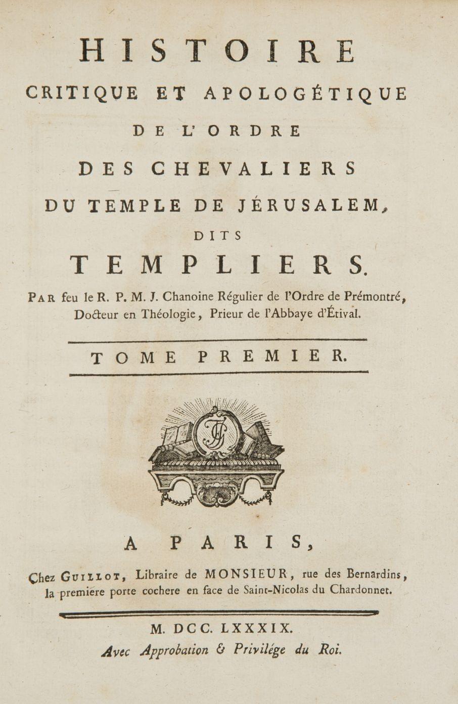 69. R.P. MONSUET Jeune: Hist. critique et apologétique de l’Ordre des Chevaliers du Temple de Jérusalem, dits Templiers. Paris, Guillot, 1789;