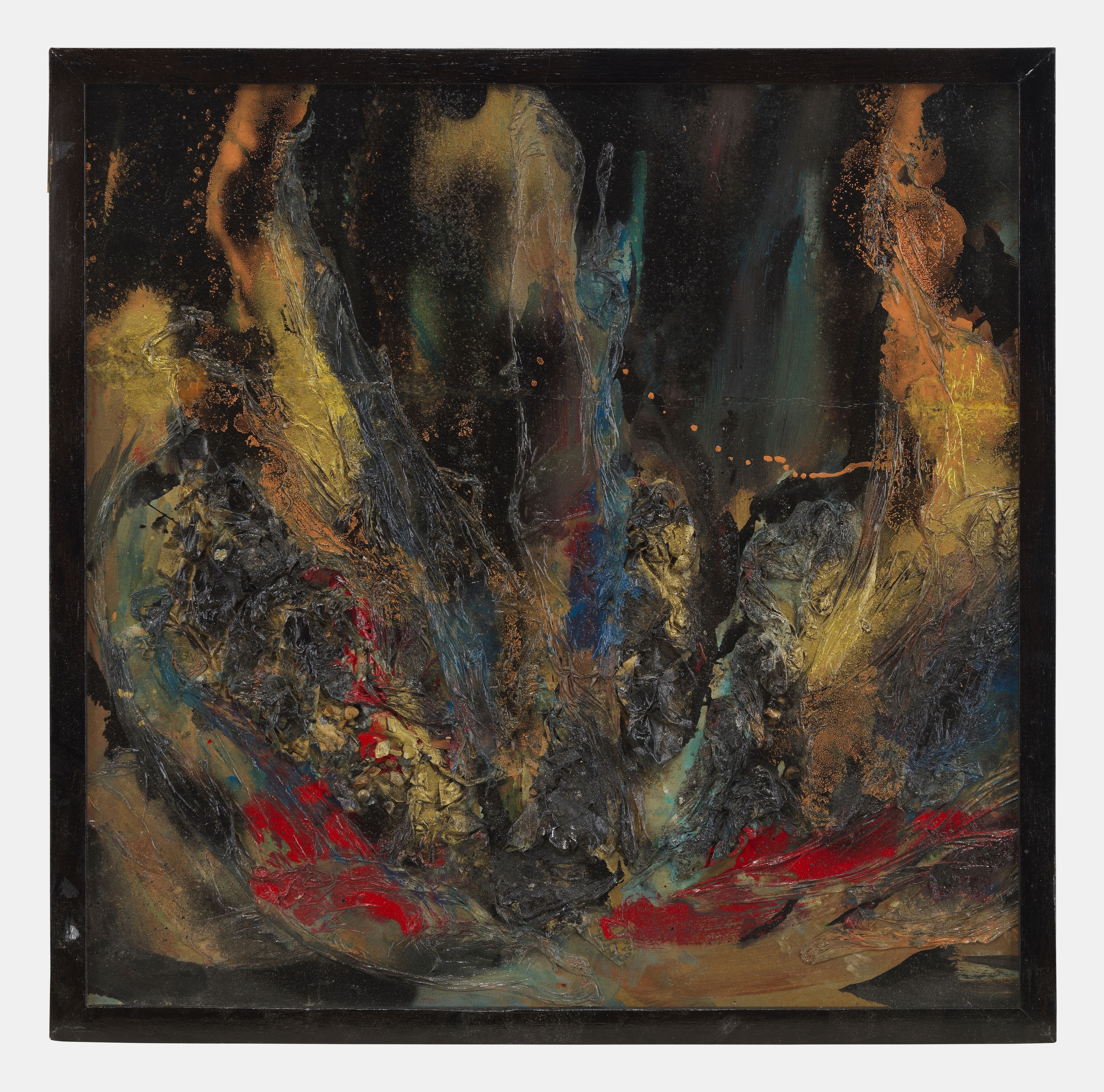 Sans titre, technique mixte sur carton, signée au dos, 51x51 cm. Pour les lots précédés d'un *, la TVA de 8,1% est due sur l'entier du prix d'adjudication.