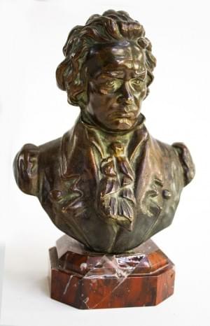 Buste de Beethoven, bronze à patine brune, arbre griotte, signé...