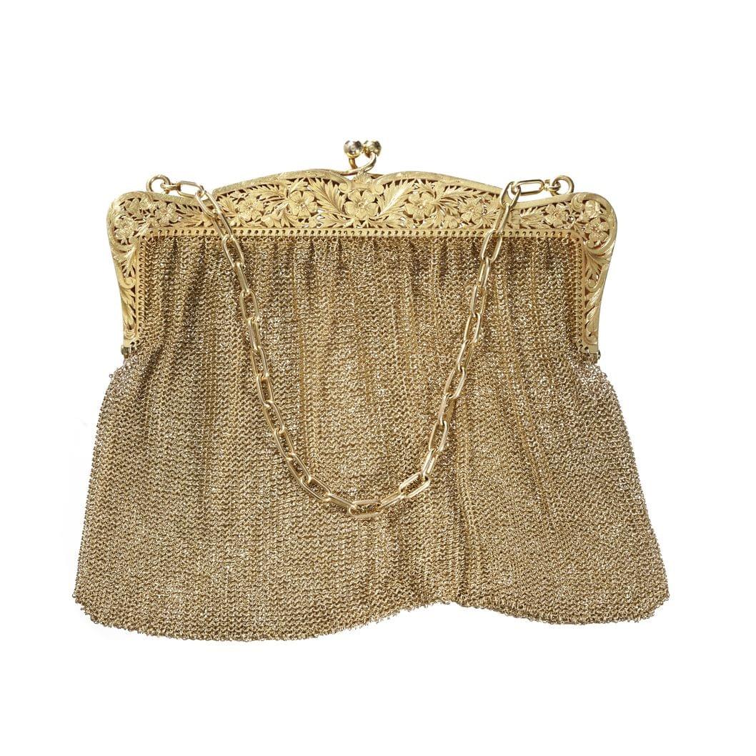 88. Sac à maille souple à décor de fleurs et feuillages ajourés