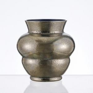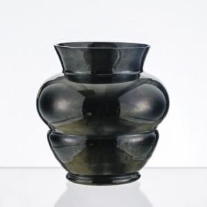 Vase à panse renflée, verre menthe à patine lustrée noire, H 16,...