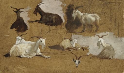 Etude de chèvres, mine de plomb et huile sur carton, 20x34 cm
