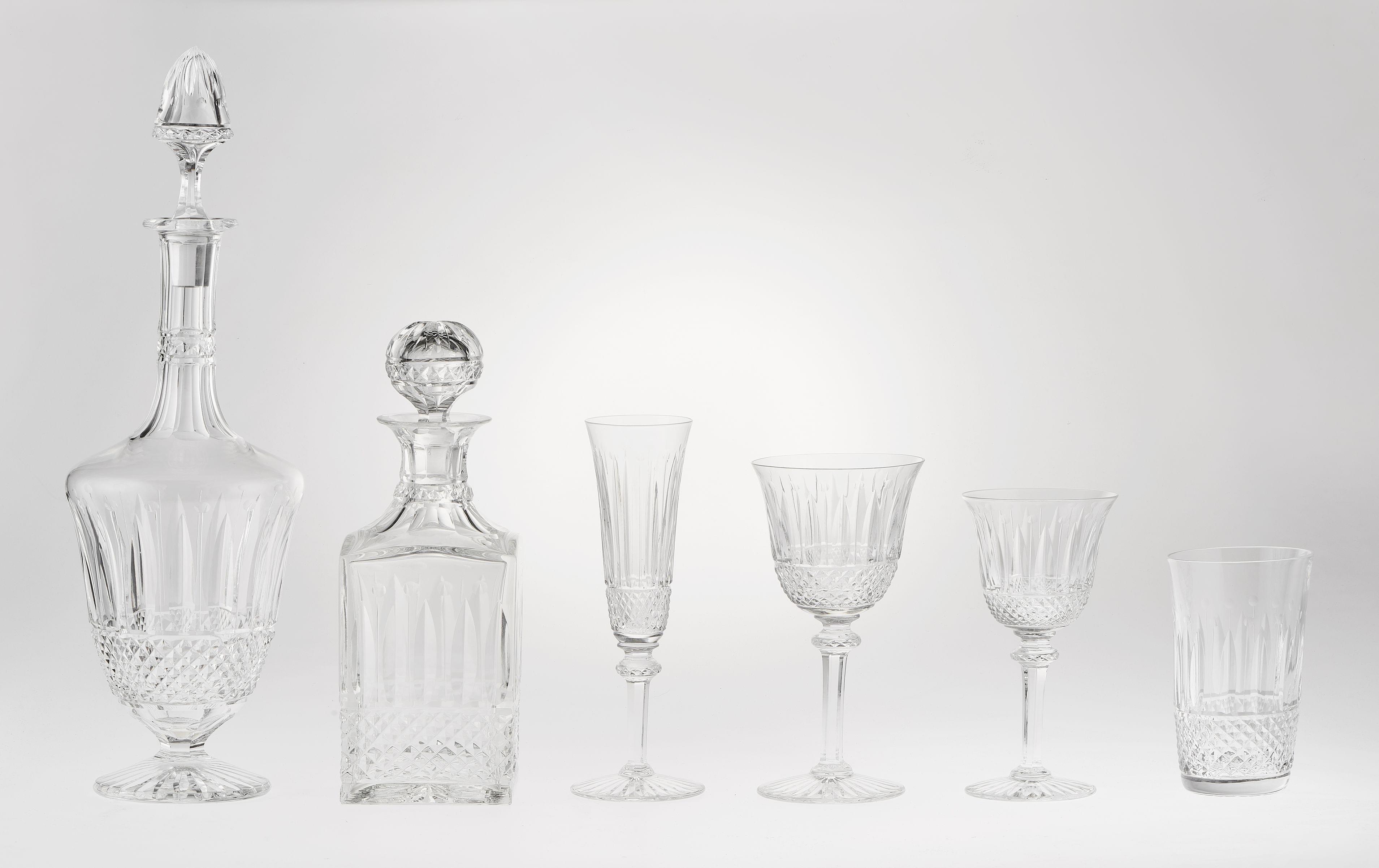 Cristal, comprenant: 12 verres à vin rouge, 12 verres à vin blanc, 12 flûtes à champagne, 12 verres à eau, 6 verres à porto, 2 carafes (56p)