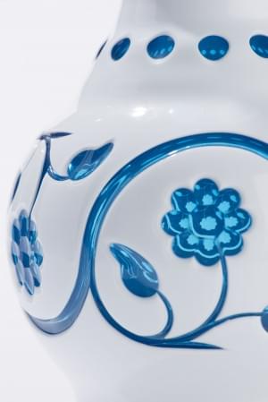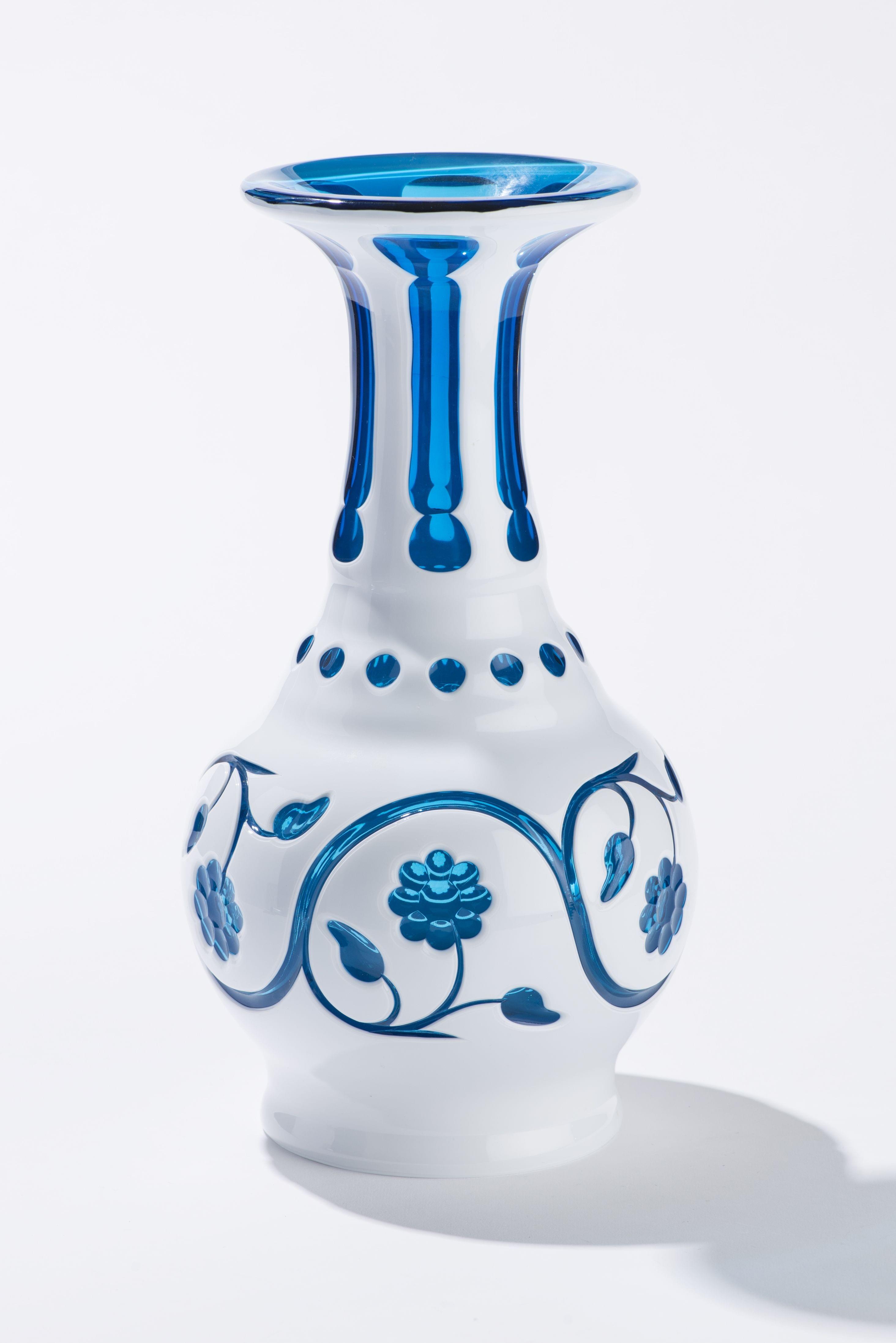 165. Saint-Louis, vase modèle Saint-Saens à décor de rameaux overlay blanc sur bleu turquoise