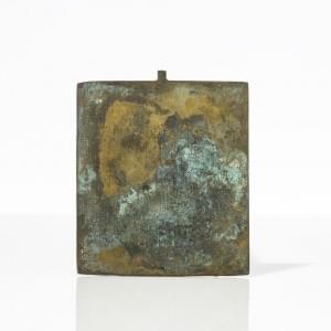 Cuivre émaillé bleu et blanc, H 10 cm
