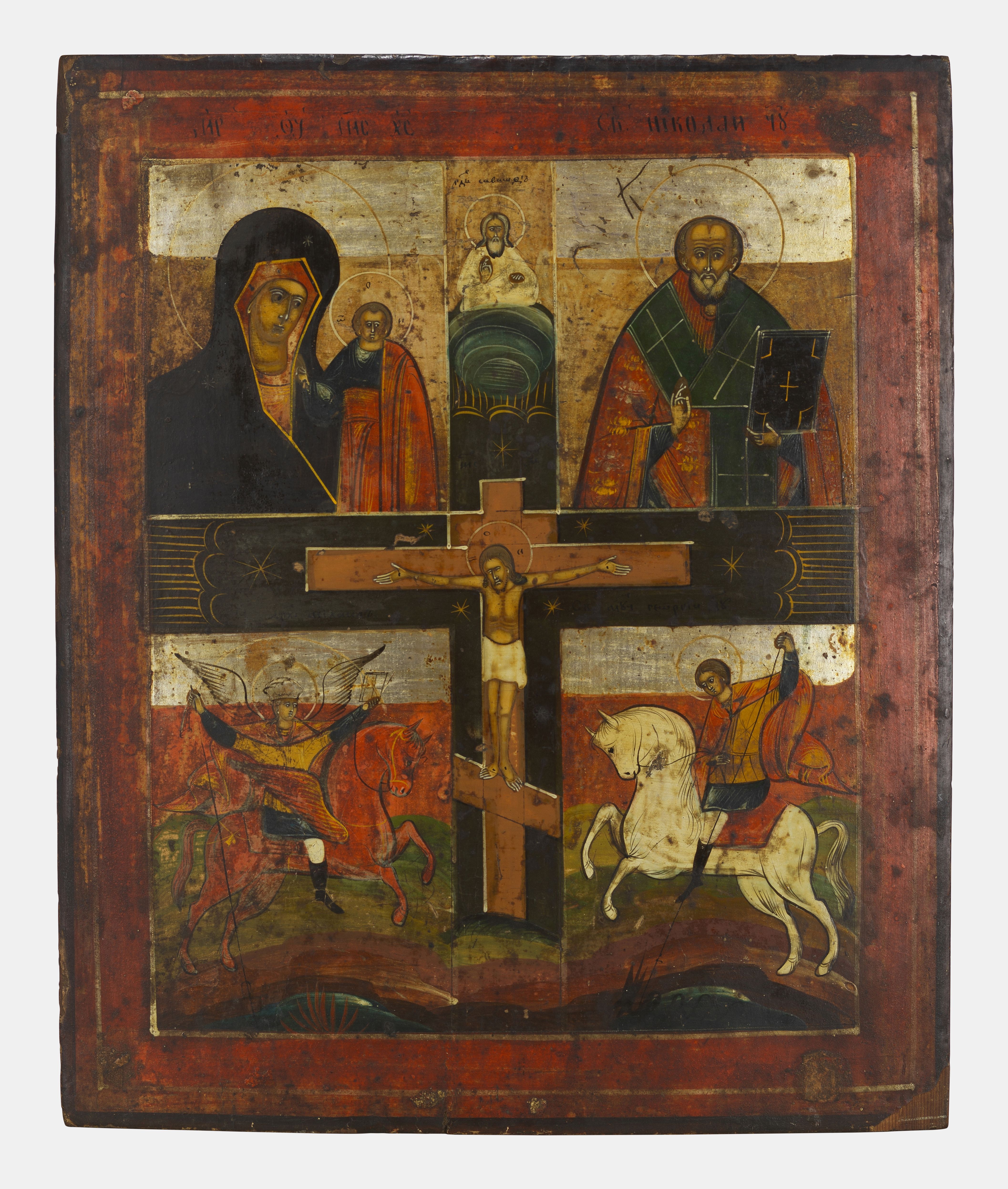 4125. Crucifixion, Mère de Dieu, Saint Nicolas, Saint Michel, Saint Ge...