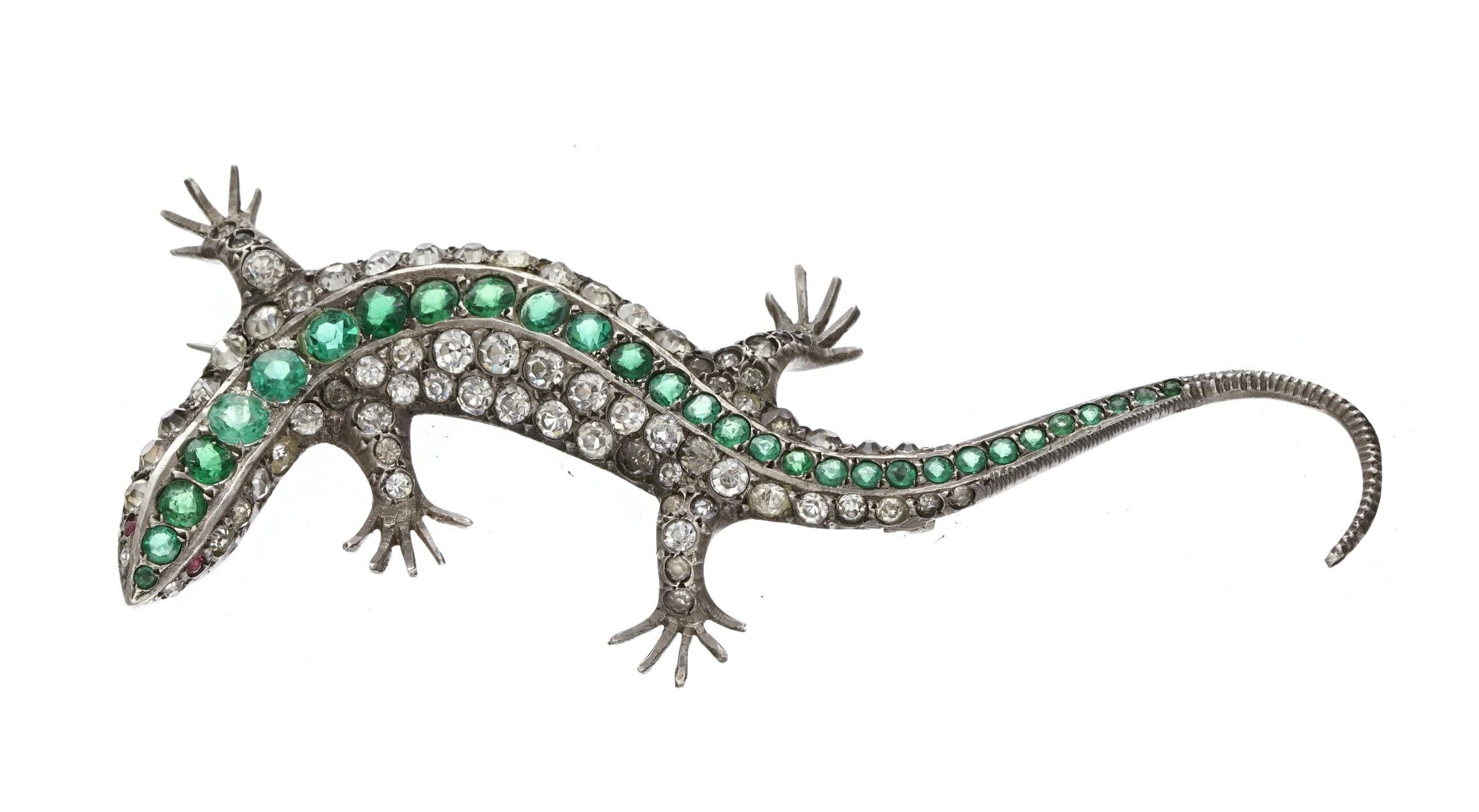3240. Salamandre sertie de pierres d'imitation pour l'émeraude et le diamant