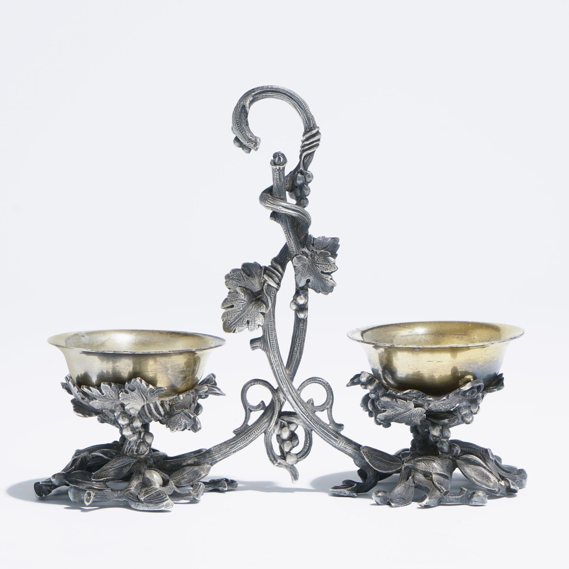 3529. Saleron double à décor de pampre de vigne et branches d'olivier, France, XIXe s
