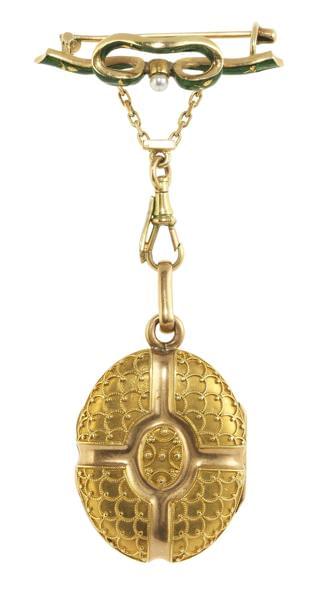 3366. Pendentif porte-photo ovale retenu par une châtelaine émaillée v...