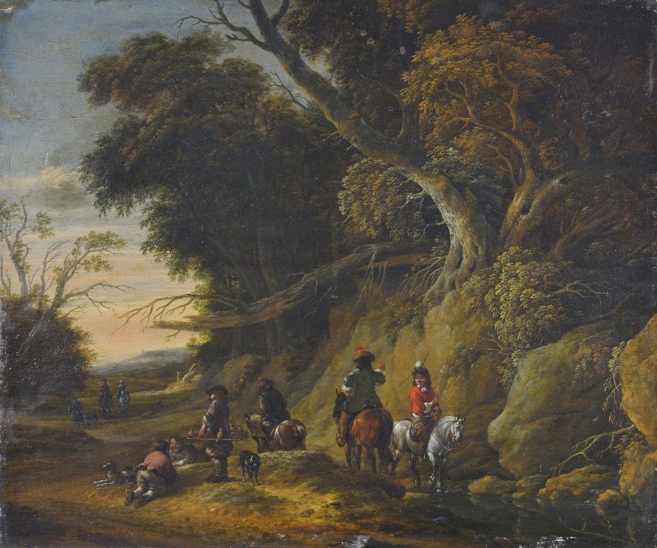 Cavaliers en chemin, huile sur panneau, signée S Romb en bas à droite, 34x40 cm. Provenance: achat Munich, juin 1947, dans la même famille depuis lors