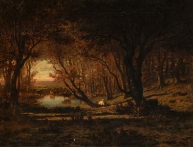 Vaches à la marre, huile sur toile signée et datée 1854, 44x57 c...