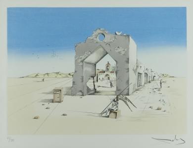 Paysage surréaliste, lithographie, signée à la mine de plomb et...