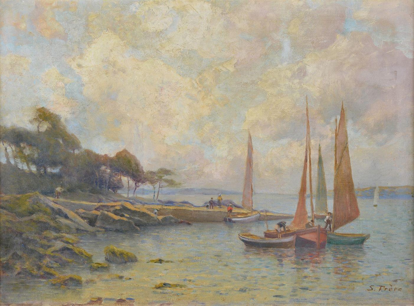 Pêcheurs en baie de Saint-Tropez, huile sur toile, signée, 54x73 cm