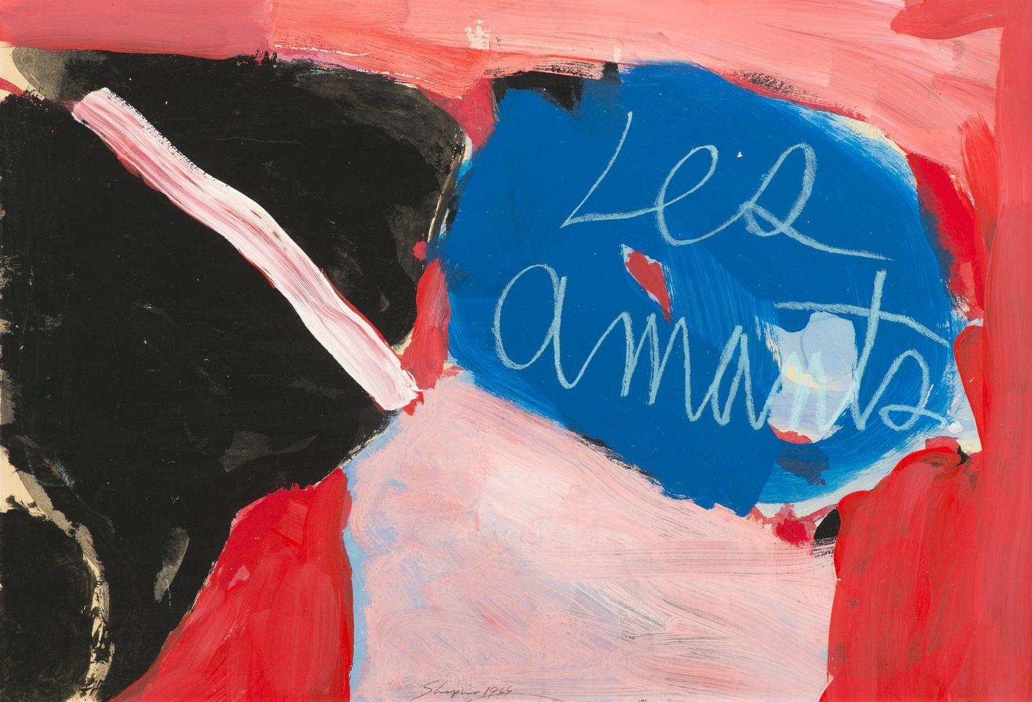 Les amants, huile sur panneau signée et datée 1966, 45x65 cm