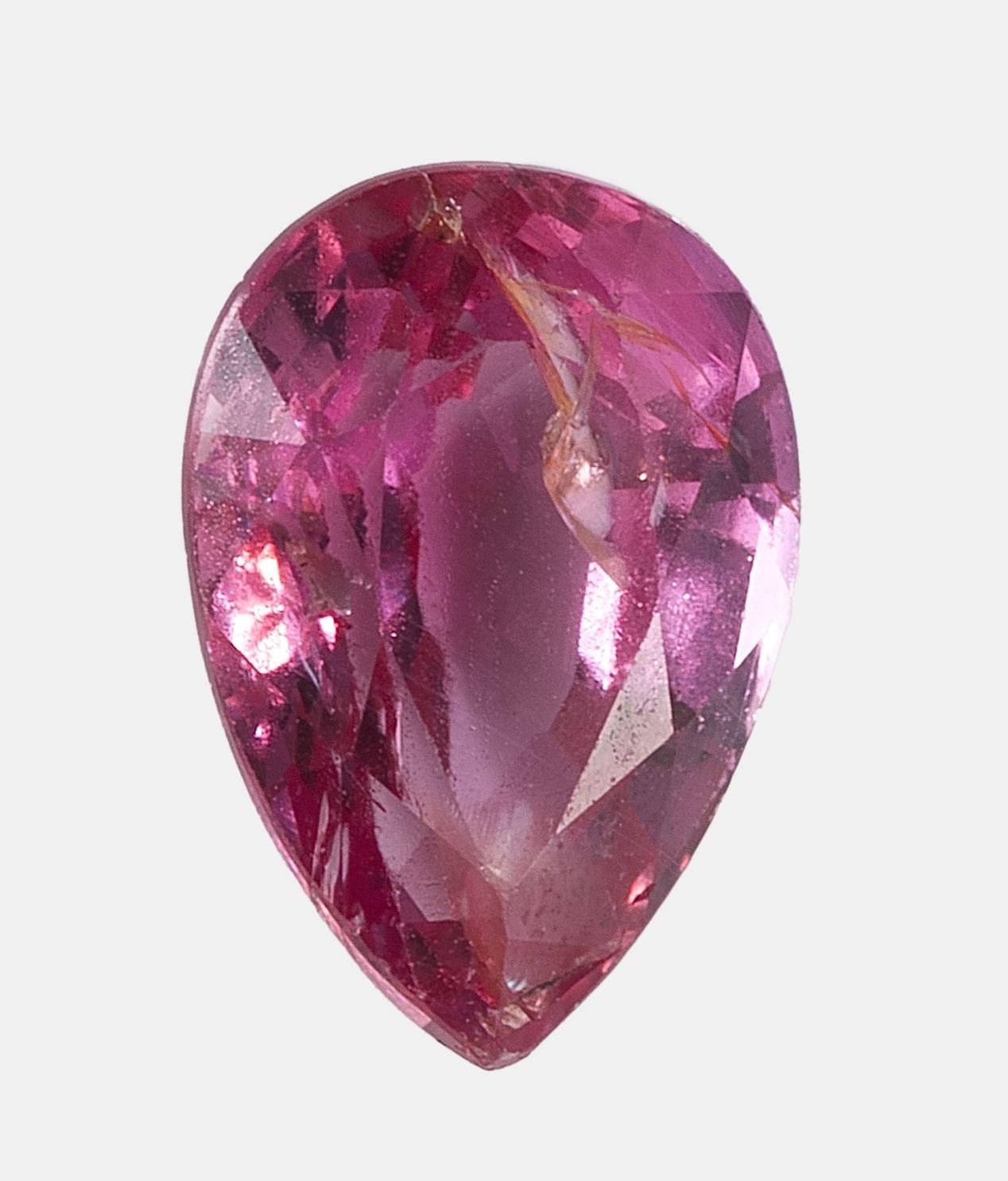 3424. *Saphir rose-orangé taille poire non chauffé sur papier