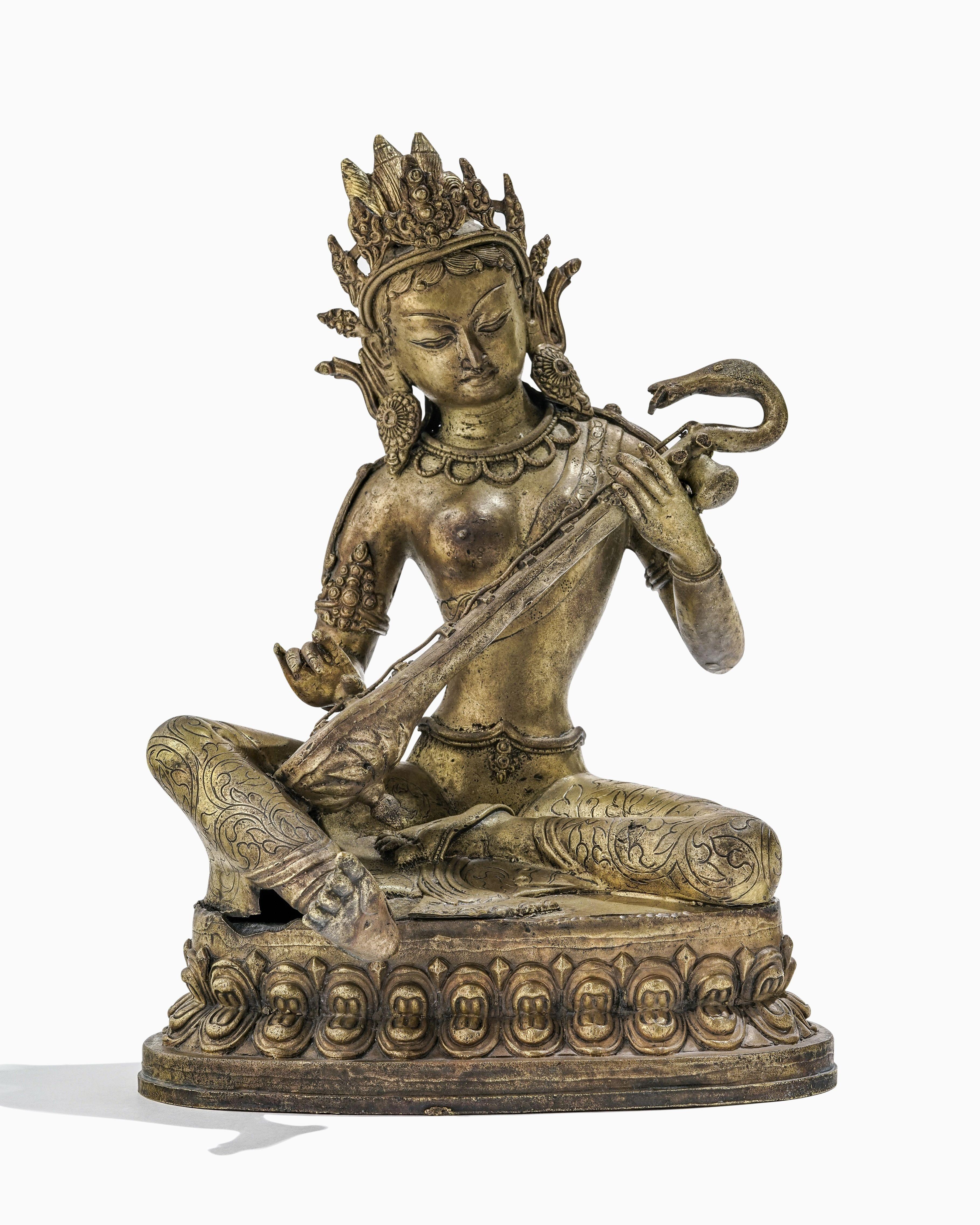 3513. Sarasvati jouant de la vînâ, Inde ou Tibet, début XXe s
