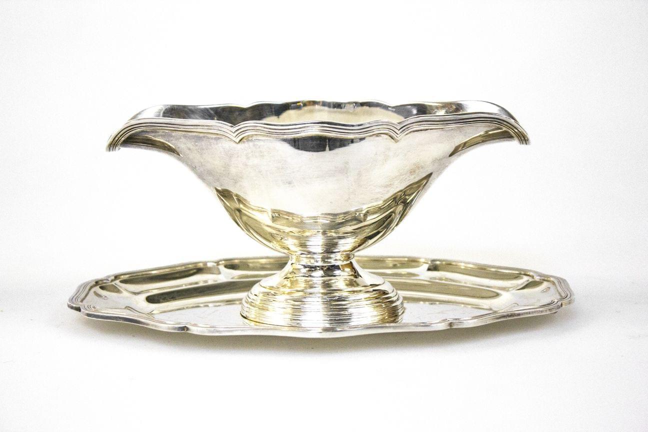 401. Saucière à anse col de cygne et présentoir navette d'époque Empi...