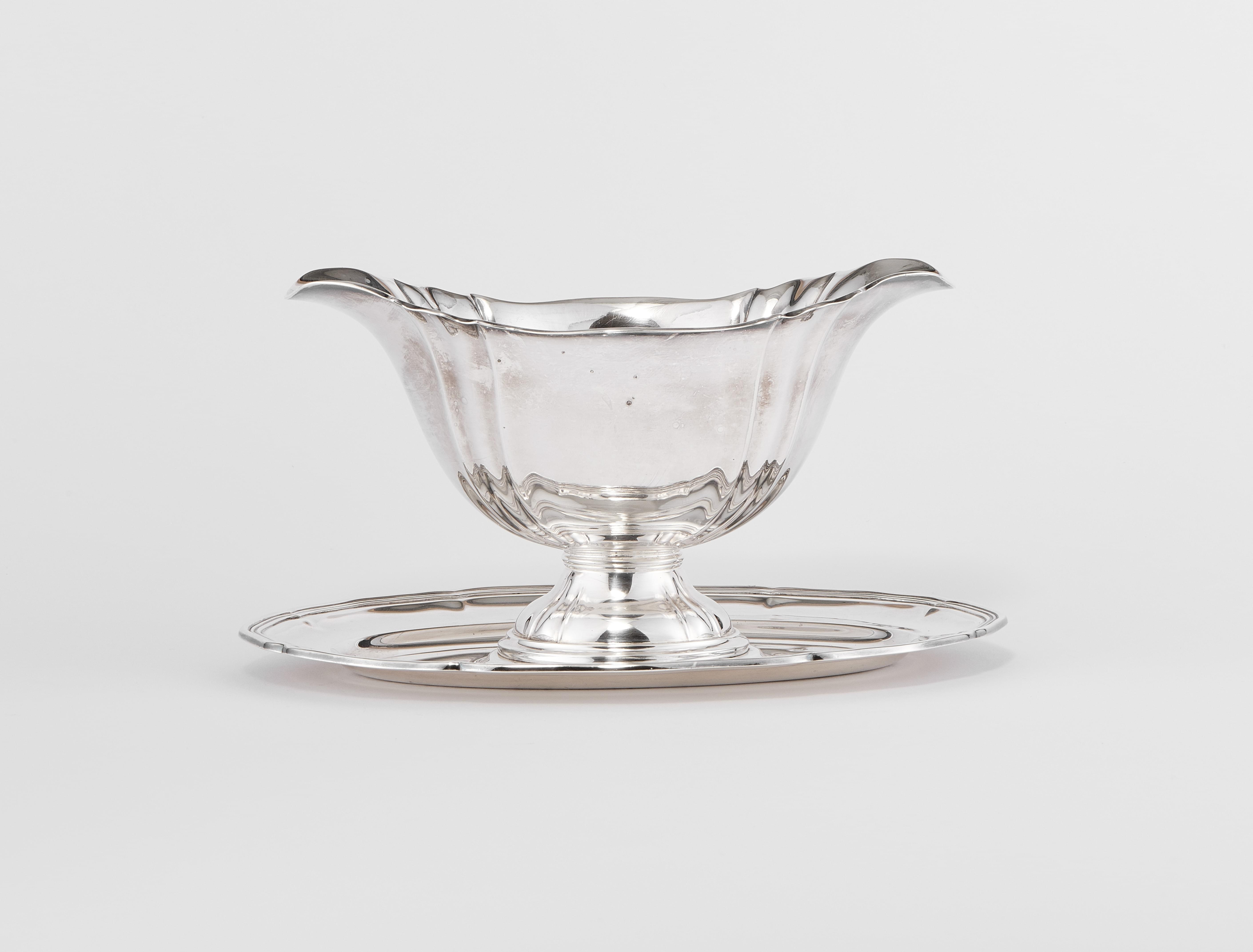 3466. Saucière festonnée sur présentoir