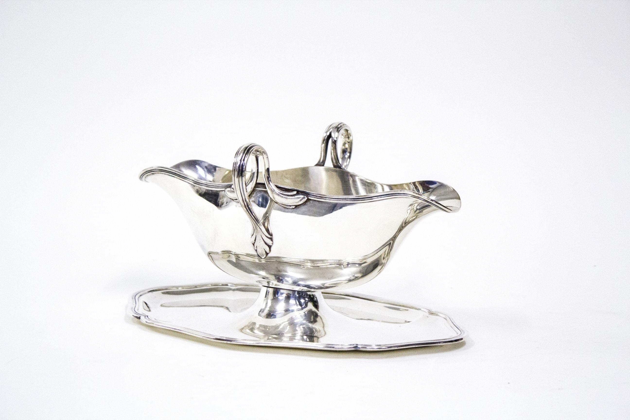 3551. Saucière sur présentoir festonnée à anses acanthes, Boujon Frères, Genève