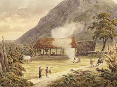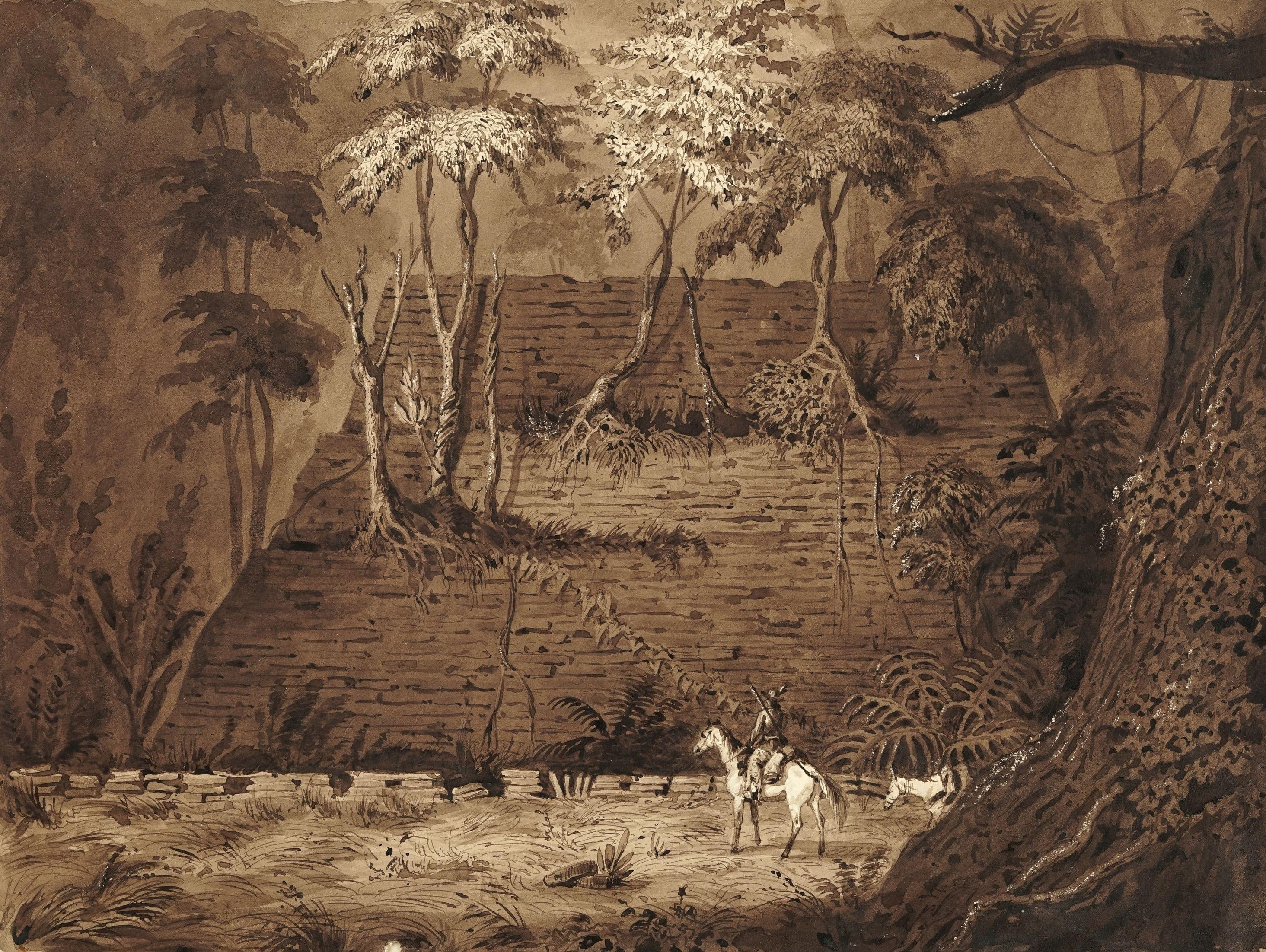 - 8 lavis aquarelles ou mine de plomb achevées figurant entre autres la découverte des ruines du grand Teocalli, un bivouac, une chasse aux caïmans, une noce dans un village zapotèque et une très intéressante scène reprenant l’exécution de voleurs dans les bois de la Malincha en 1857 avec description détaillée de la scène.