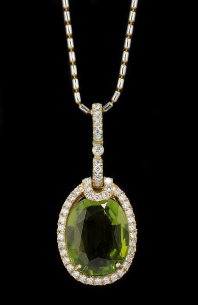 76. *Chaîne à maille torsadée retenant un pendentif serti d'une émer...