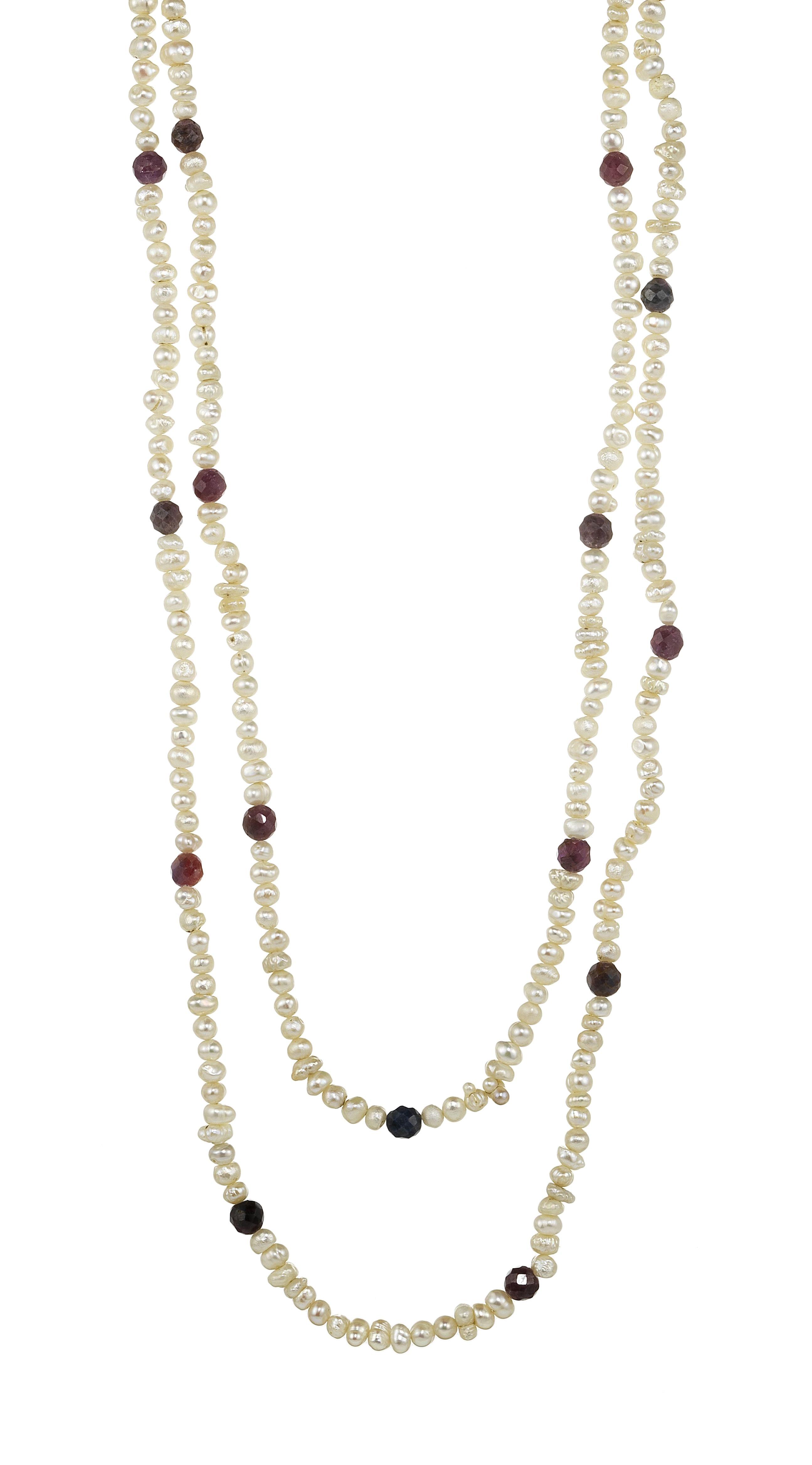 56. Collier retenant un rubis taille cabochon poire (env. 17x13x7 mm...