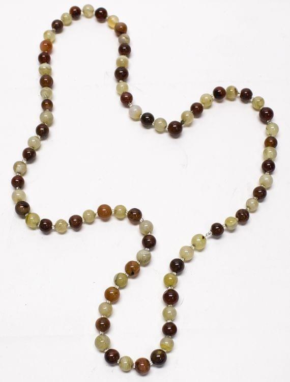 84. Sautoir de boules de jade rose et de quartz rose alternées de bo...