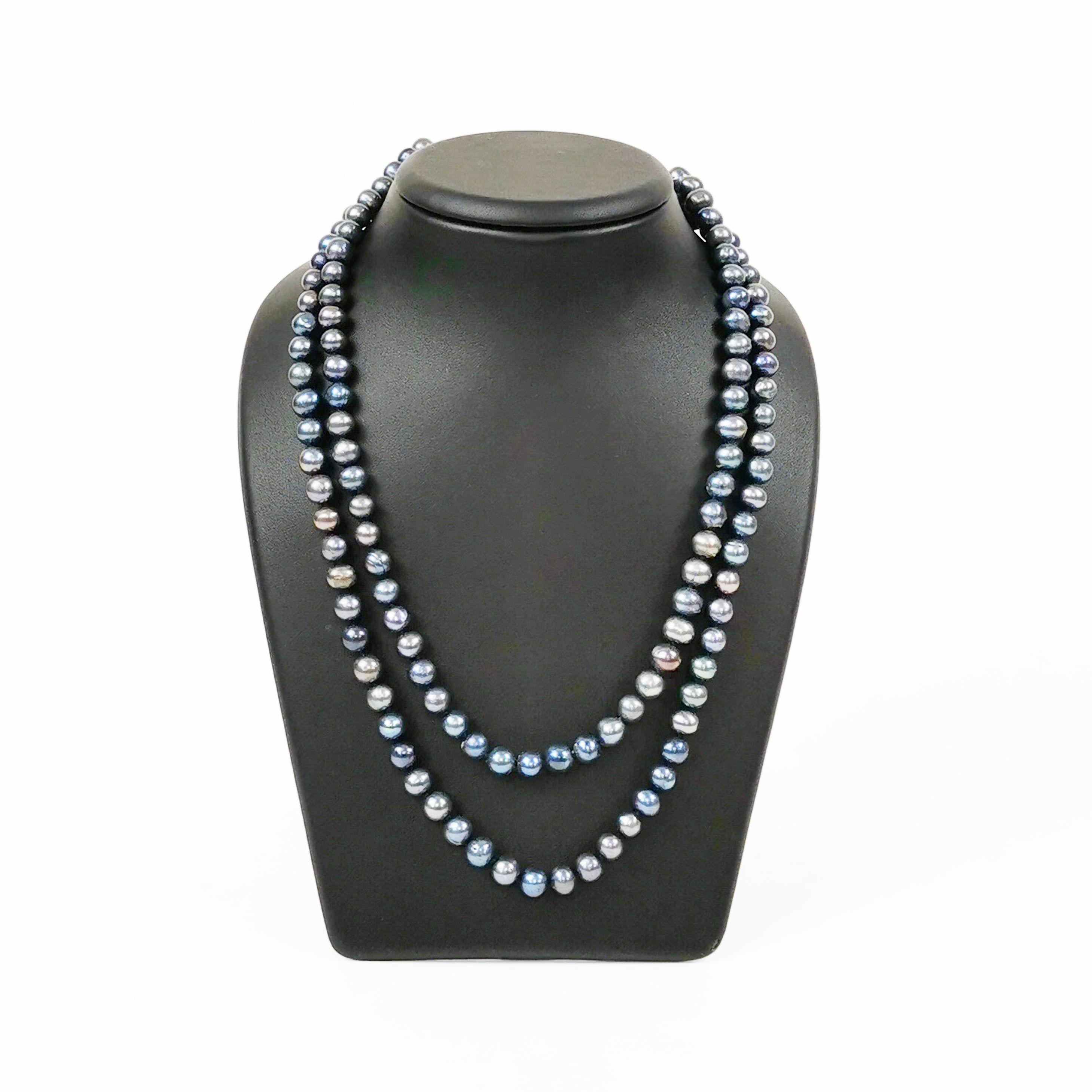 3053. Sautoir de perles d'eau douce violettes à grises (D env. 8 mm)