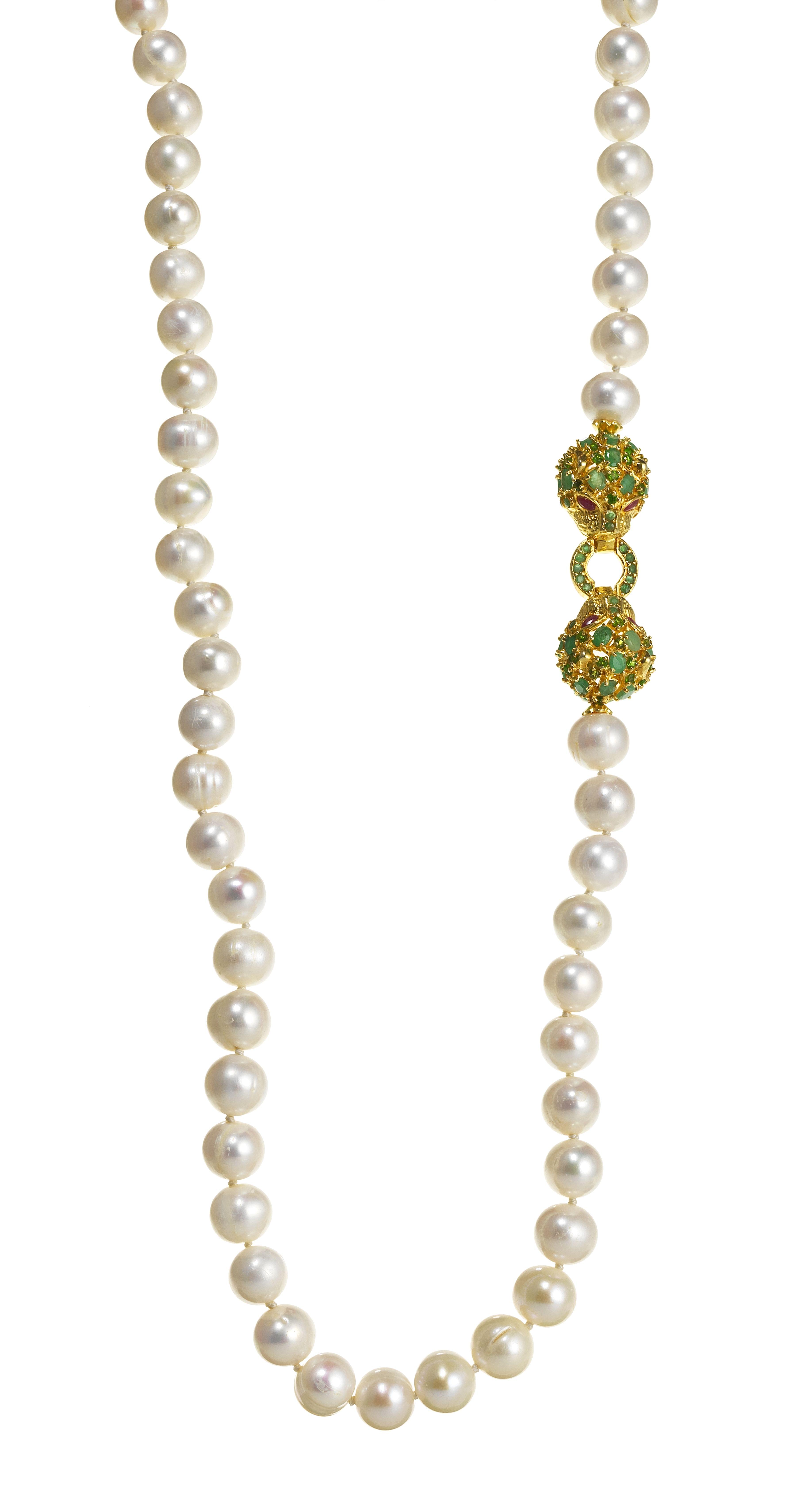 3255. *Sautoir ouvrant d'un rang de perles (D env. 9,5 mm)