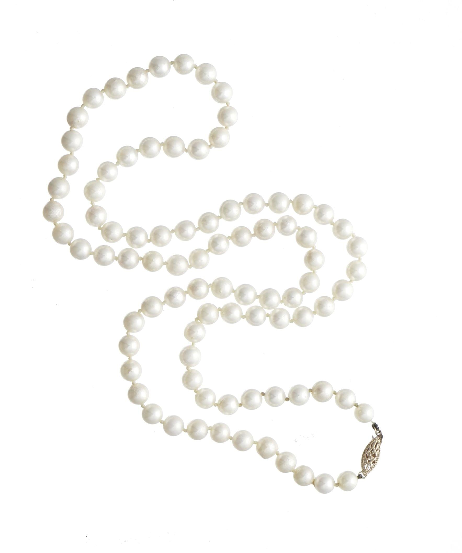 685. Collier de trois rangs de perles terminé par un fermoir à motif...