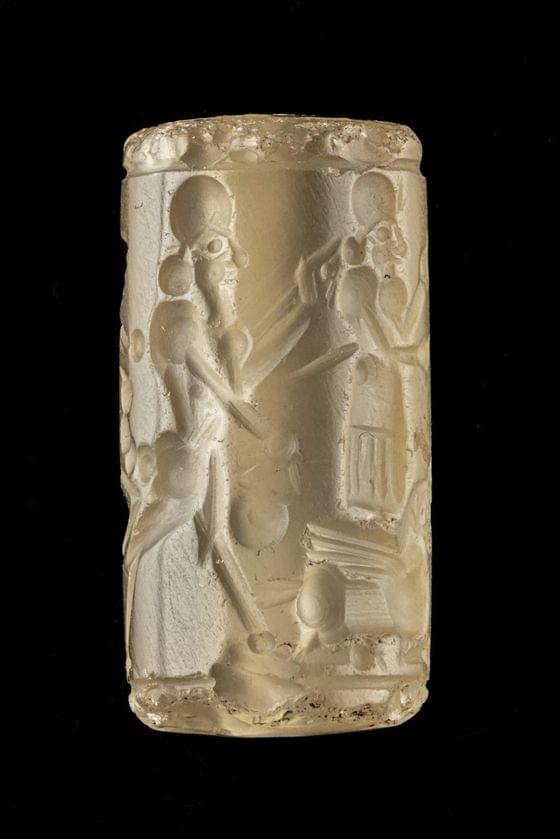 160. Sceau-cylindre, cristal de roche, néo-assyrien, 934-610 av. JC