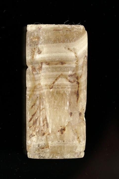 3054. Bague chevalière ronde sertie d'une plaque d'onyx à motif de cro...