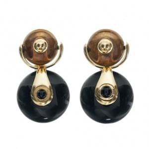 339. Marina B, paire de clips d'oreilles retenant des perles d'onyx s...