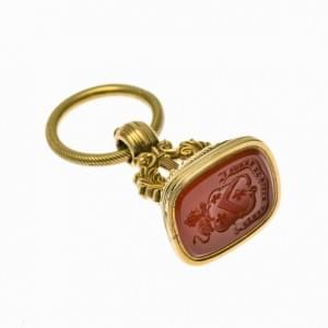 3052. Sceau serti d'une intaille en cornaline à décor d'armoiries