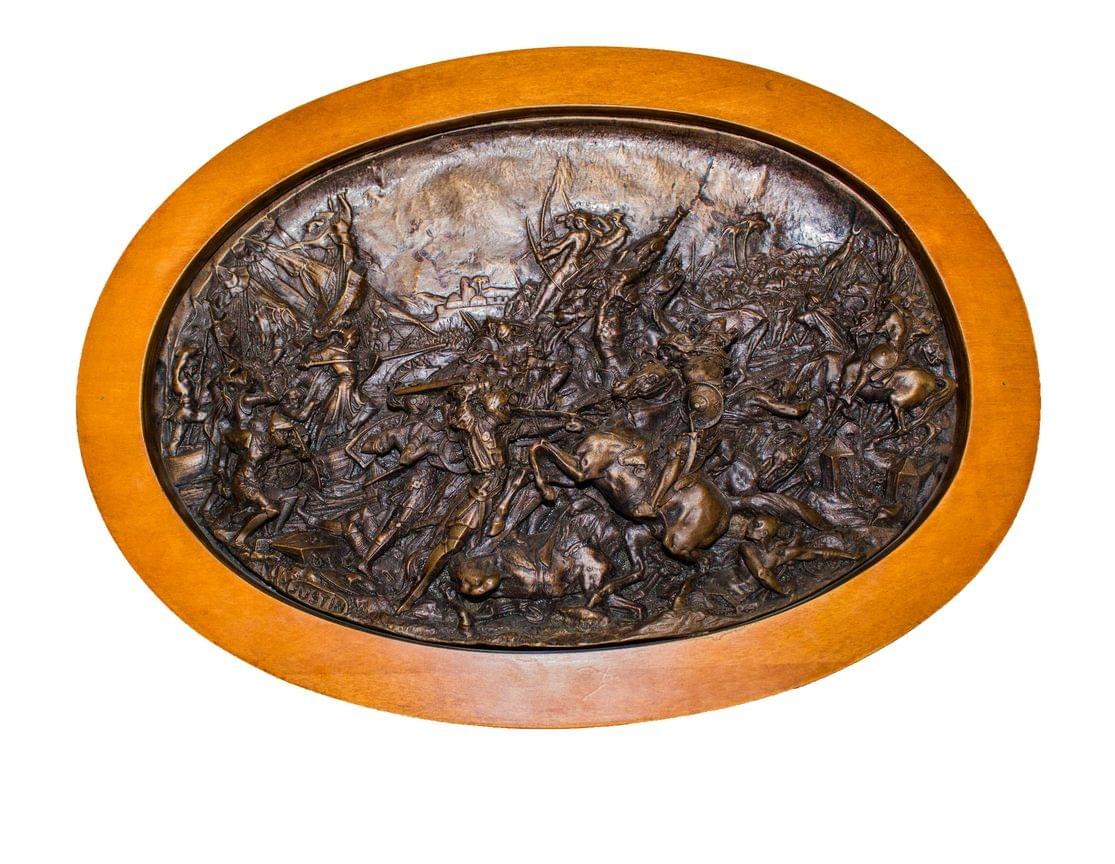 Placage de bois de rose, bronze doré, marbre veiné rose encastré...