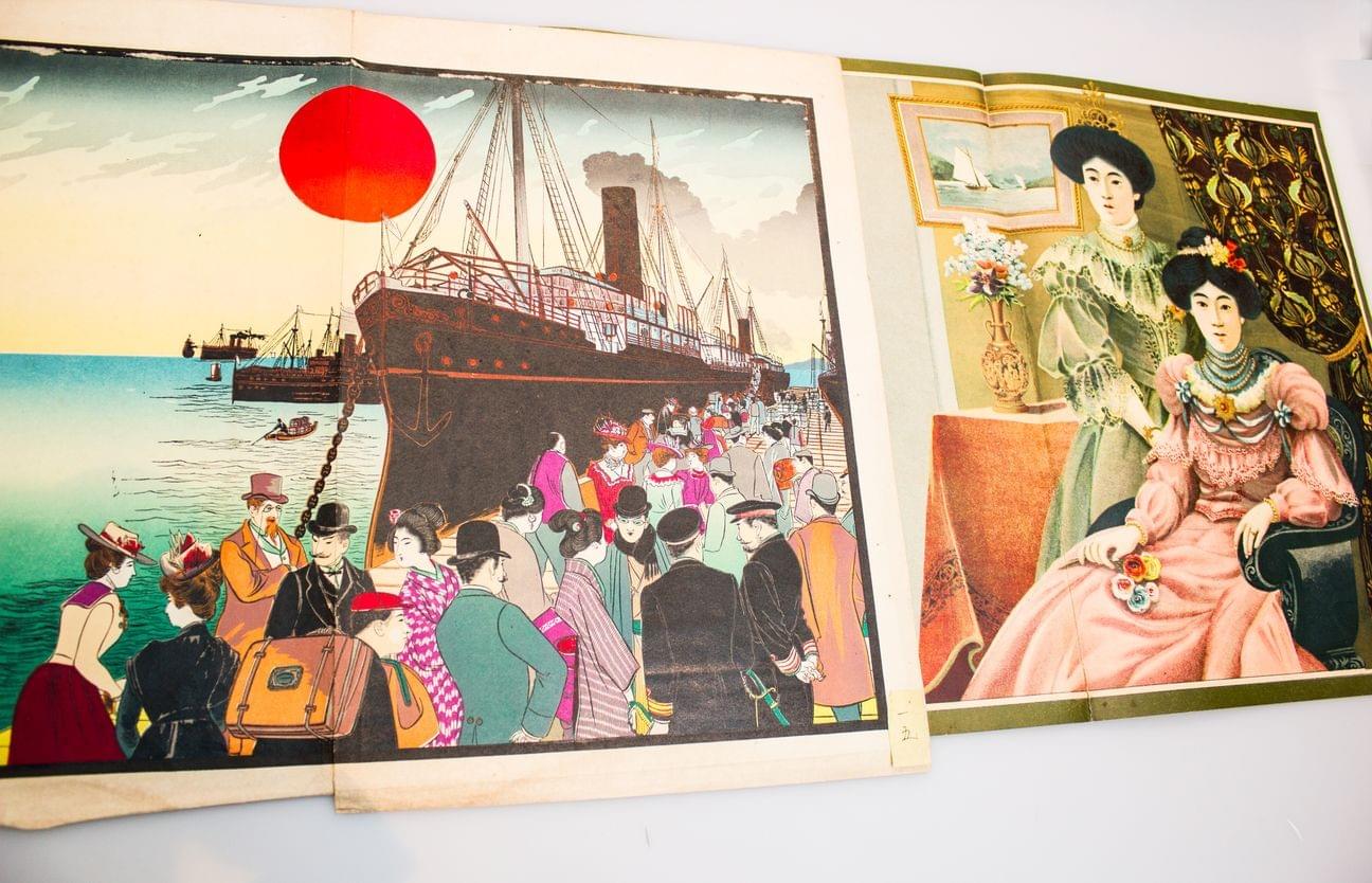 171. Collection de 4 boîtes à décor repoussé et gravé de fleurs, scèn...