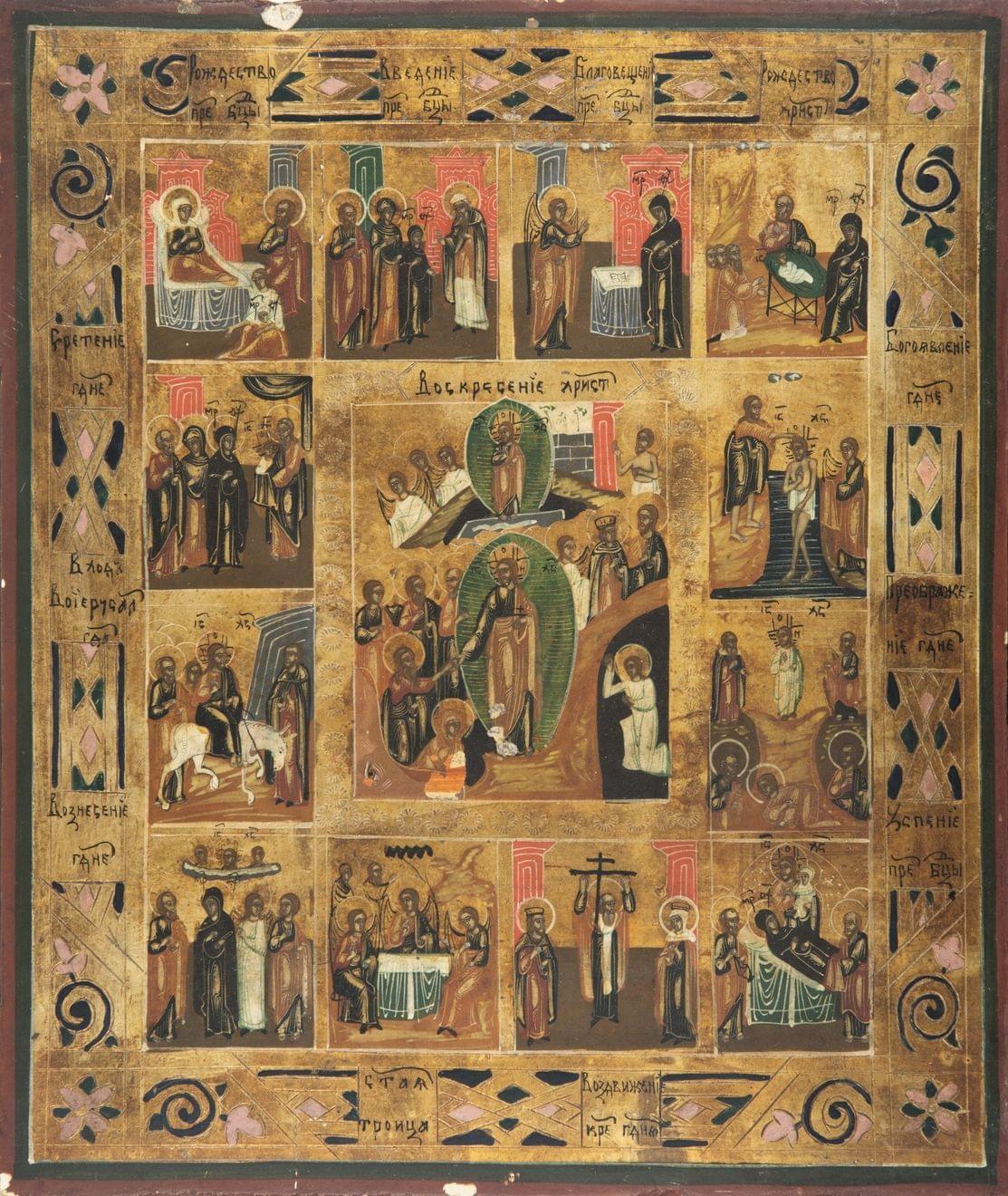 Icone ukrainienne sur panneau, XIXe s, 38,5x32 cm