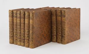 12 vol. in 4°, veau fauve jaspé, dos à nerfs orné, tranches roug...
