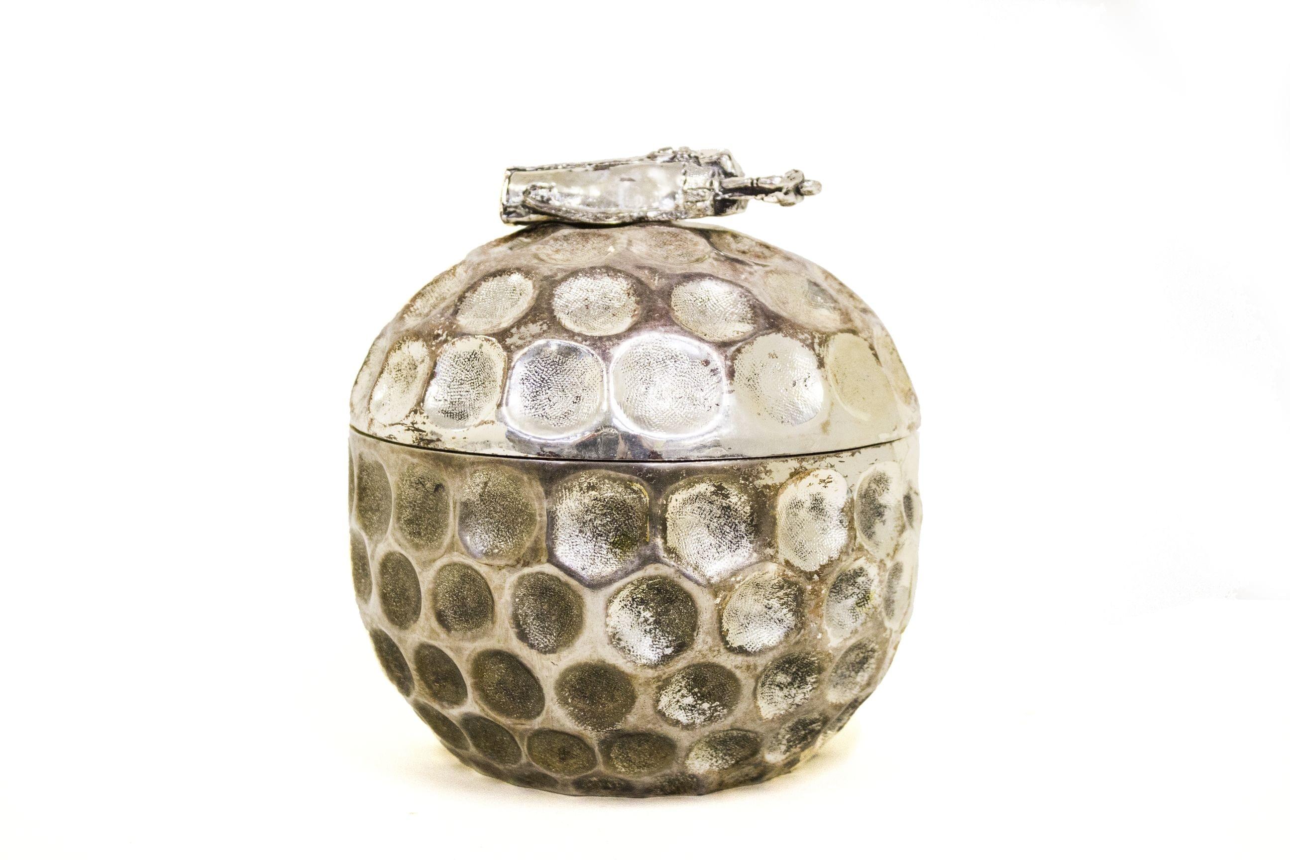 Porcelaine émaillée bleu, base brune, L 15,5 cm