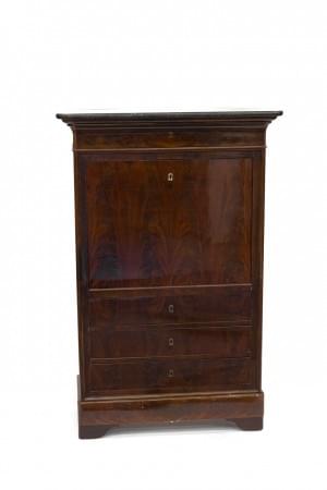 Bois laqué blanc et brun, pans coupés et motifs géométriques app...