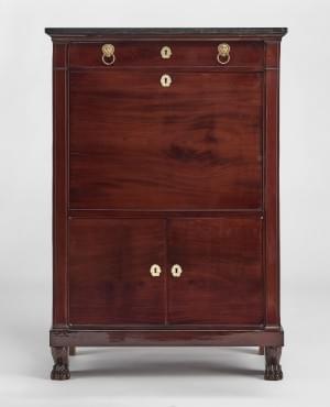 Un abattant, un tiroir et pieds griffes, acajou et marbre noir, 144x97x40 cm