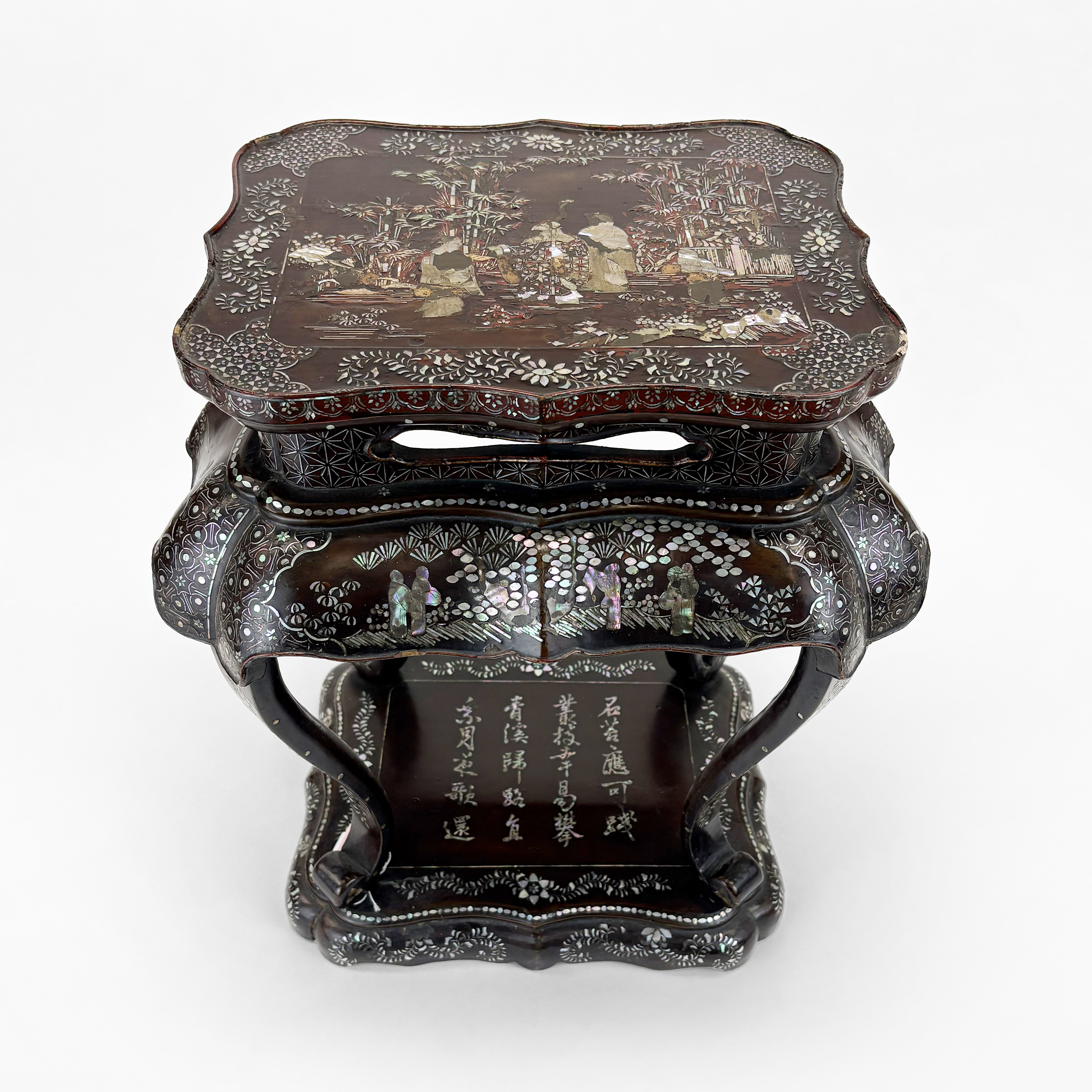 Bois noirci à décor incrusté de nacre, 45x40x30 cm
