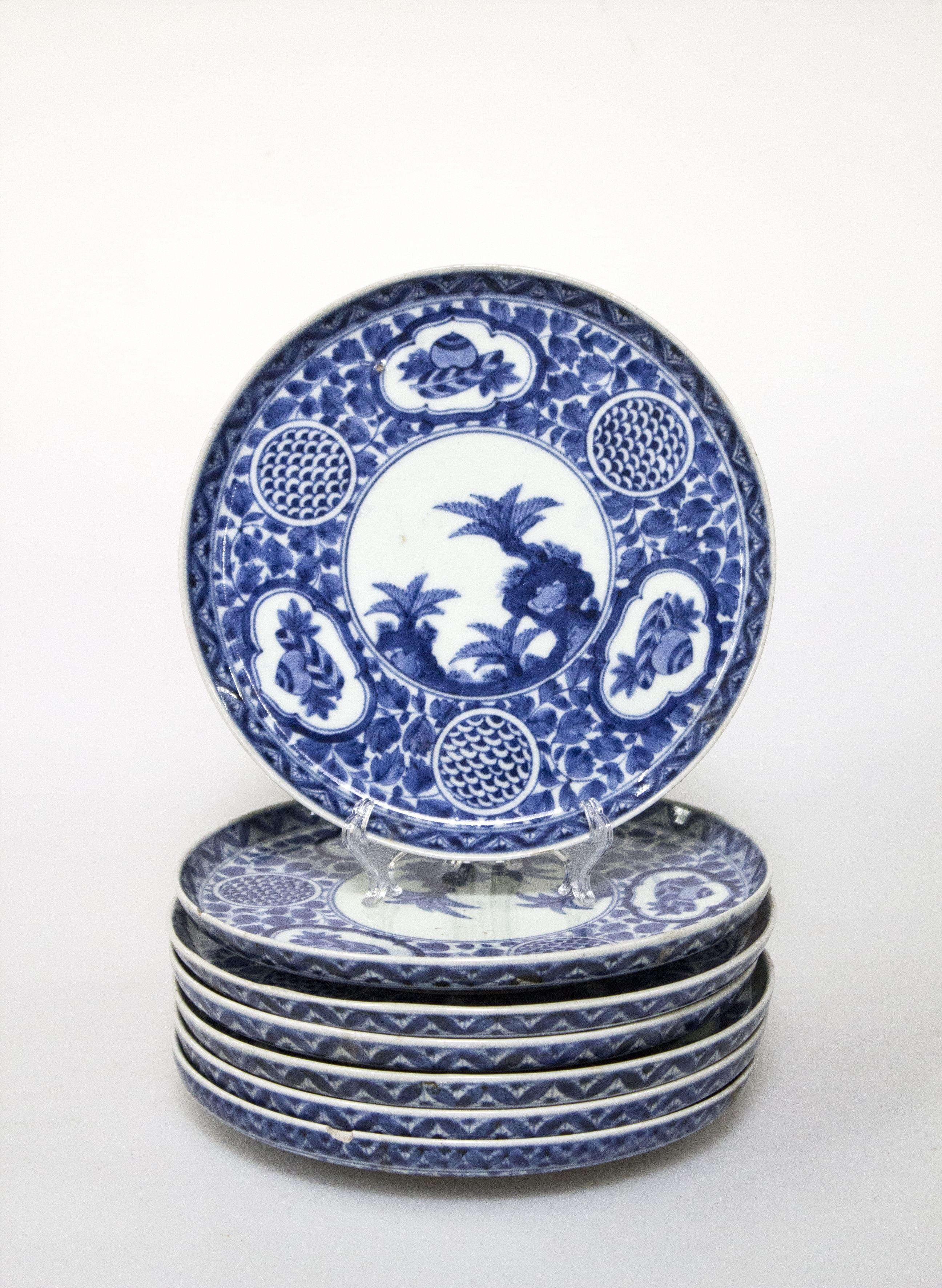Porcelaine bleu blanc à décor de personnages sous un pin, D 24 c...