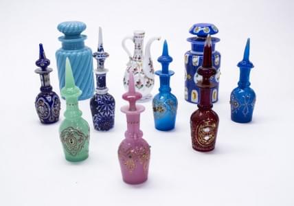 Soie, un à décor de pièce de joaillerie sur fond bleu et vert, 8...