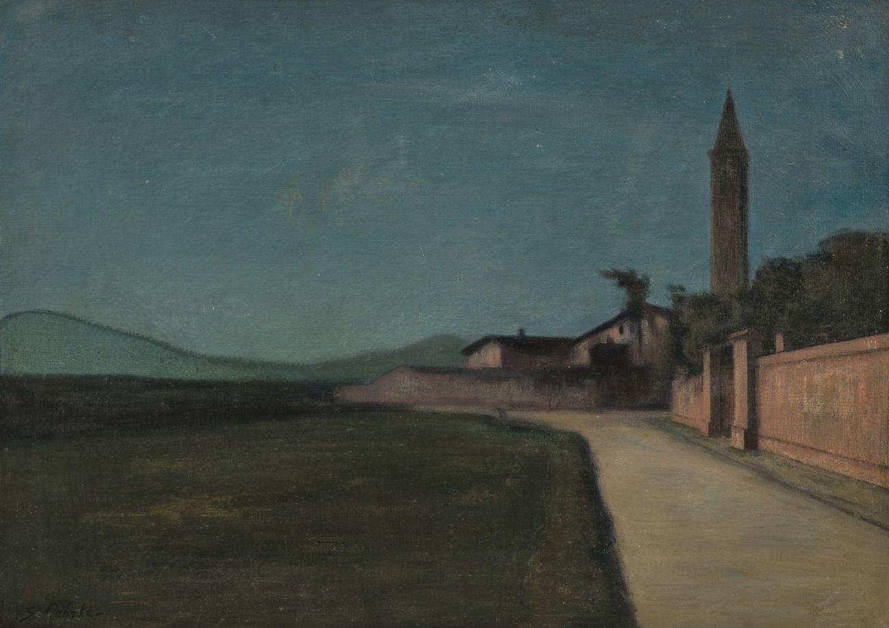Le clocher du village, huile sur toile, signée, 46x65 cm